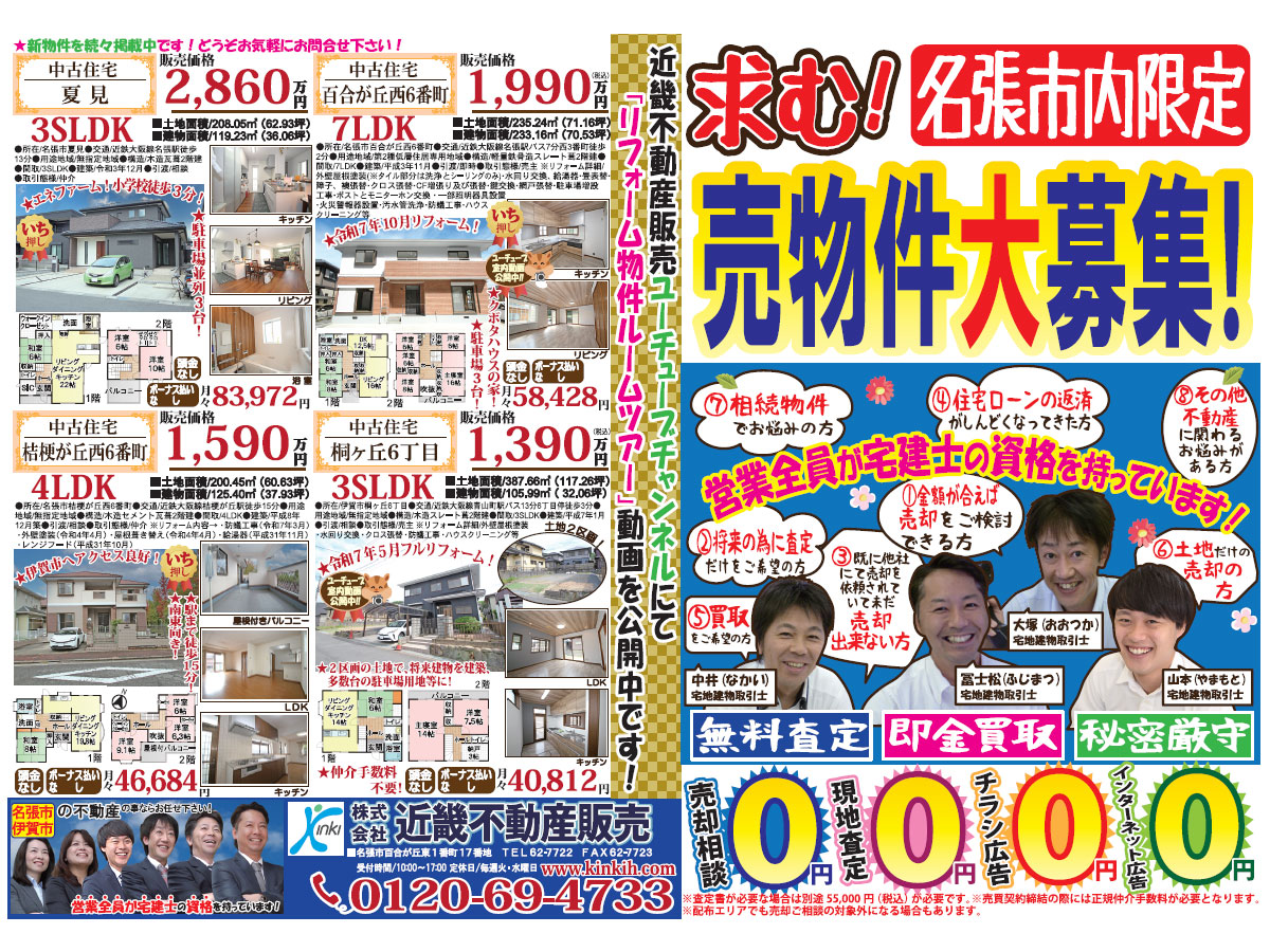 開示、訂正、利用停止等に必要な所定の手続などをご案内します。但し、内容によってはご要望に応じられない場合があります。 個人情報の取扱い全般に関するお問合せは、 ㈱近畿不動産販売 本社(電話0595-62-7722)で受付けています。